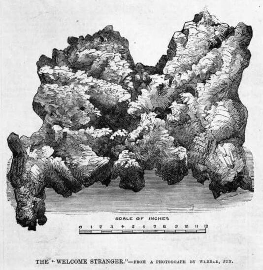Jeden z největších a nejznámějších nugetů byl nalezen v roce 1869 v jihovýchodní Austrálii v oblasti Victorian Goldfields. Vážil 2520 uncí, tj. zhruba 78,38 kilogramů a je znám pod jménem Welcome Stranger. Zlaté nugety jsou dnes vzácnější než diamanty. Vyskytují se jen při zemském povrchu a lidé jich nacházejí stále méně. Ryzost nugetů se pohybuje obvykle mezi 82% a 97% zlata, tj. 20-23 karátů. Zbývající část tvoří převážně stříbro.